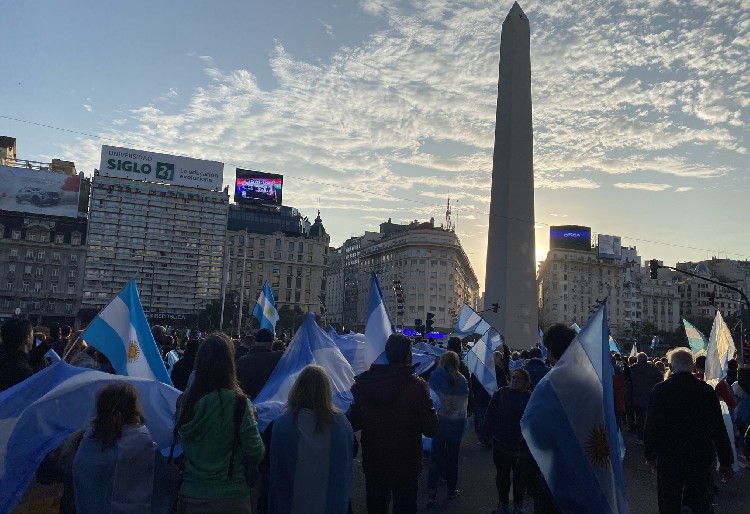 En tanto, manifestantes autoconvocados por redes sociales de Internet con el hashtag #9J, #YoVoy, "banderazo" y "argentinazo contra el gobierno", comenzaron a concentrarse desde las 16 en el Obelisco con banderas argentinas y consignas opositoras al Gobierno.