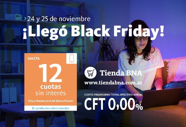 Tienda BNA, el marketplace del Banco Nación (BNA), se suma al Black Friday el 24 y 25 de noviembre con promociones para comprar productos electrónicos ara el hogar y tecnología en hasta 12 cuotas sin interés.