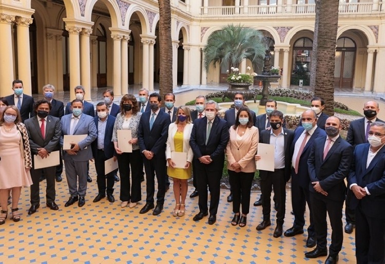 El jefe de Estado, que estuvo acompañado en el acto por el jefe de Gabinete, Juan Manzur, y los ministros de Economía e Interior, Martín Guzmán y Eduardo "Wado" De Pedro, respectivamente, ponderó el acuerdo firmado con los gobernadores porque "sirve mucho en la discusión con el FMI" por el pago de la deuda externa, al presentar un país que "proyecta al futuro en términos fiscales racionales, y con el consenso de todos los gobernadores".