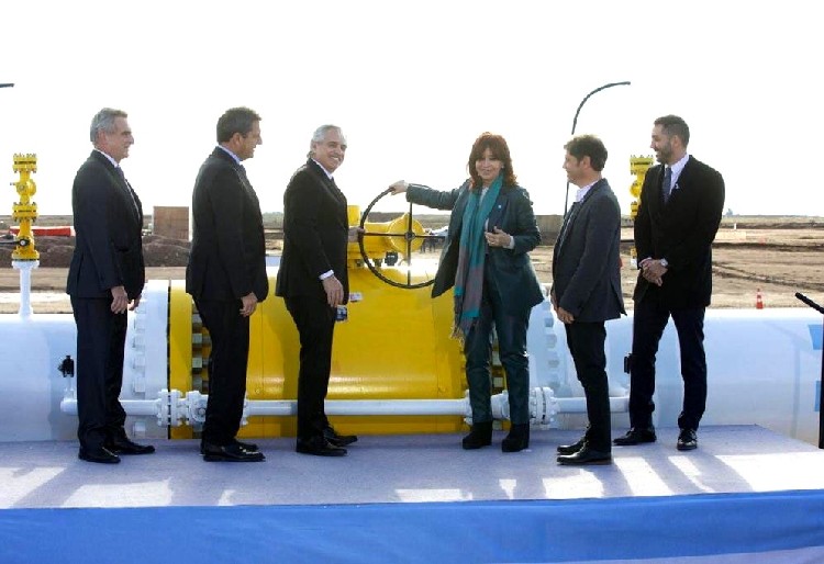 Cristina Kirchner se retrotrajo al primer gasoducto Presidente Perón que se inauguró en el país. “No es justo que si tenemos la segunda reserva internacional de gas no convencional nos quieran cobrar en dólares”, destacó la funcionaria. Y dijo que esta traza “iba a ser distinta” y “nosotros queríamos que fuera primero a la provincia de Buenos Aires” por su producción industrial y agropecuaria. Agradeció a los dirigentes de YPF, tanto los presentes como los anteriores.