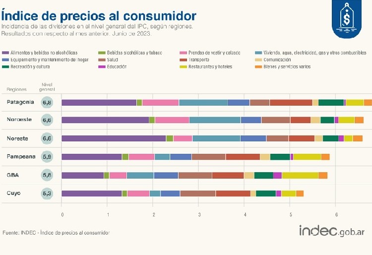 La inflación del mes de junio fue del 6% en el promedio país, de acuerdo a lo publicado este jueves por el Instituto Nacional de Estadística y Censos (INDEC). Así, el acumulado interanual es del 115%.