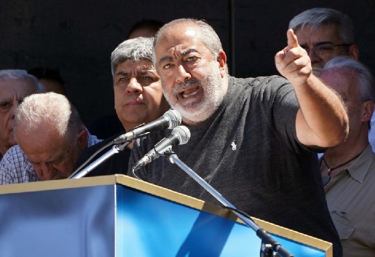Al hablar en la Plaza del Congreso, en el contexto del paro y marcha que realiza la CGT, el dirigente señaló que quienes tienen una gran responsabilidad de respaldar al movimiento obrero son los mismos legisladores que "hacen campaña cantando la marcha, con los cuadros de Perón y Evita, pero cuando tienen que tratar una ley se esconden y los tenemos que venir a buscar a su despacho".