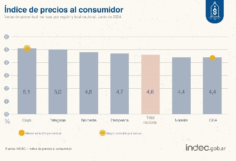 Le siguieron Restaurantes y hoteles (6,3%) y Educación (5,7%) por subas en todos los niveles de enseñanza.La división con mayor incidencia fue Vivienda, agua, electricidad, gas y otros combustibles (14,3%), en las regiones GBA, Noreste, Noroeste y Cuyo, mientras que en Pampeana y Patagonia fue Alimentos y bebidas no alcohólicas (3,0%), donde se destacaron los aumentos de Verduras, tubérculos y legumbres, Pan y cereales y Leche, productos lácteos y huevos.